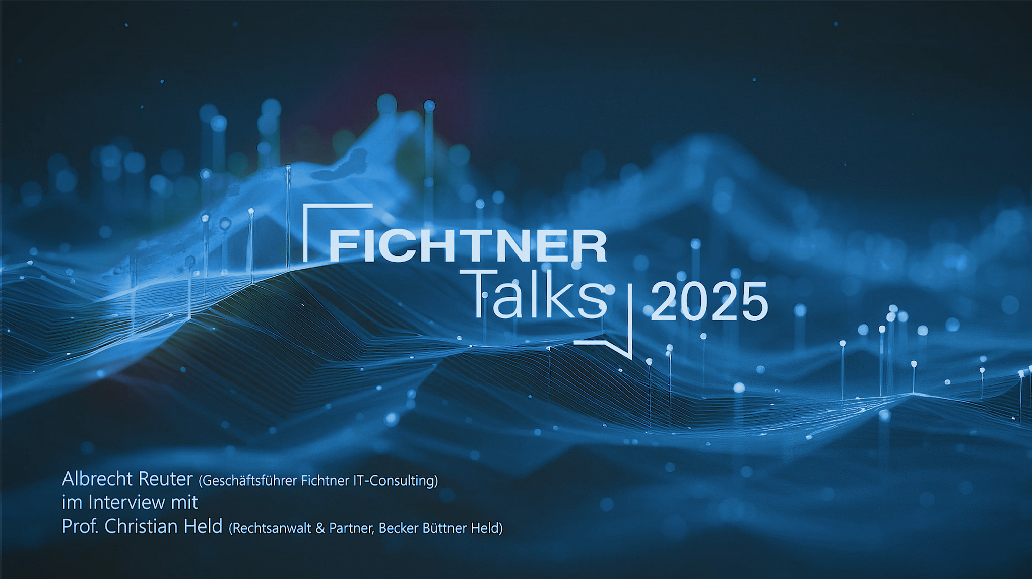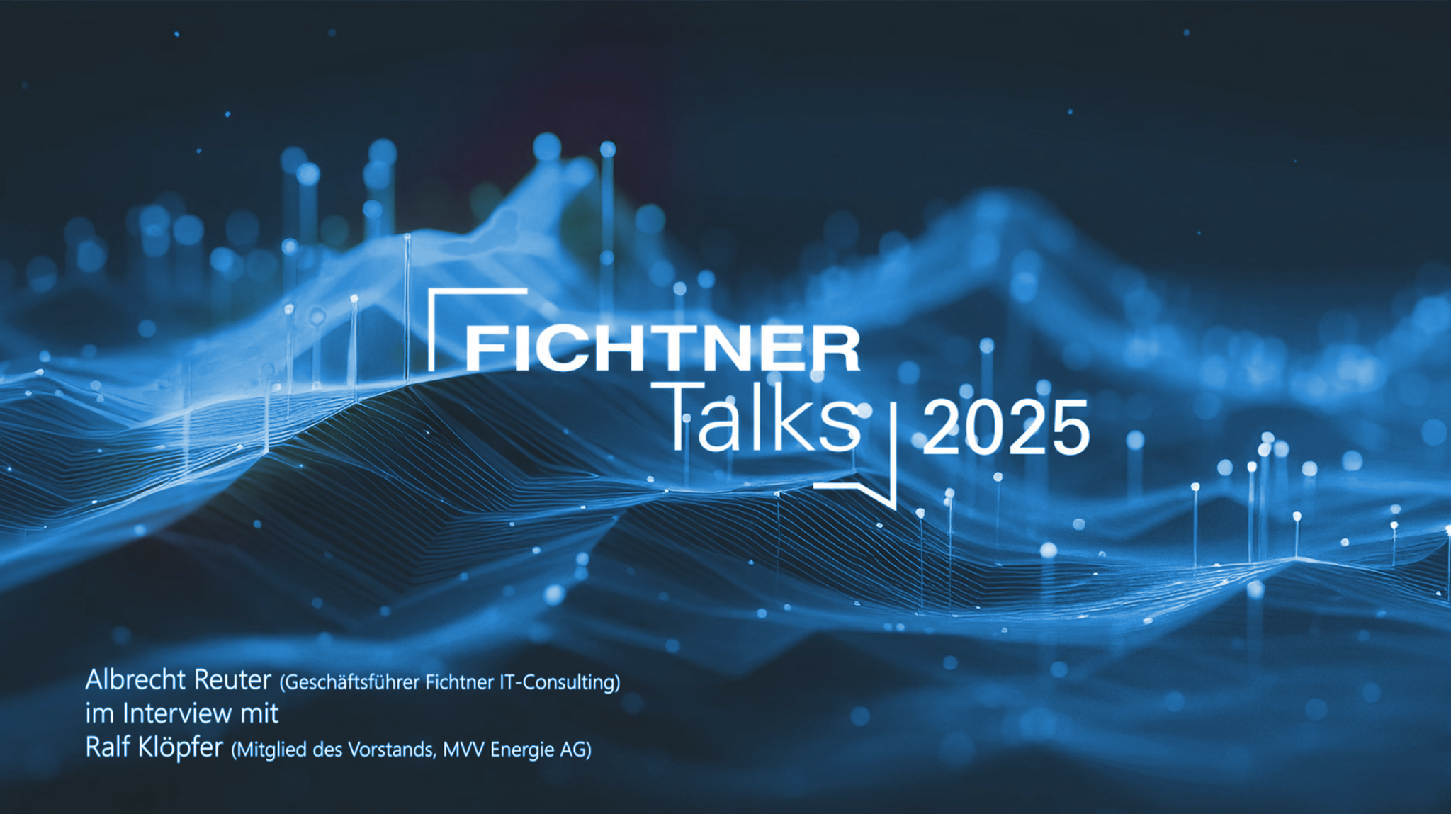Während der FICHTNER Talks 2026 werden Bild-, Ton- oder Videoaufnahmen zum Zwecke der Dokumentation, Berichterstattung oder zur Ankündigung zukünftiger Veranstaltungen angefertigt, sowie ein Livestream für Fichtner interne Zwecke. Der Veranstalter ist berechtigt, diese Aufnahmen zu den genannten Zwecken Dritten zu überlassen, und in Medien wie LinkedIn oder unter www.fichtnertalks.de zu veröffentlichen. Der Veranstalter wird darauf achten, dass Persönlichkeitsrechte der Teilnehmenden dabei nicht verletzt werden. Möchten Sie nicht fotografiert oder gefilmt werden, bitten wir um umgehende Benachrichtigung.